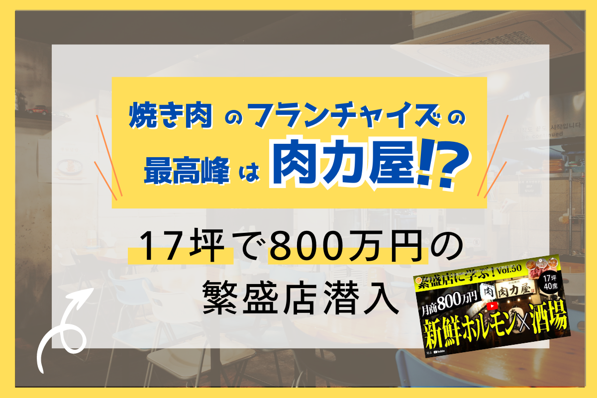 今回の記事は、フードコネクションのYouTubeチャンネル「個人店のミカタLAB」で公開している「焼肉のフランチャイズの最高峰は肉力屋?!17坪で800万円の繁盛店潜入」の内容をまとめたものになります。