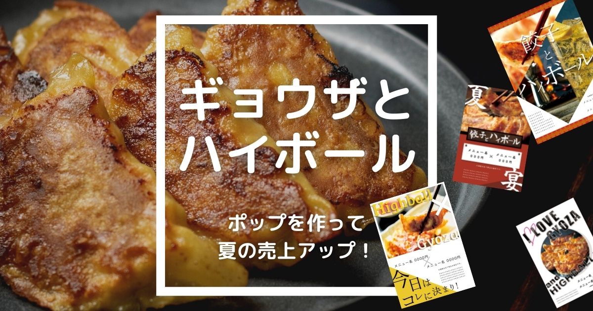 赤を基調に木目を合わせたデザインテンプレート。大きな「夏」の文字で暑い夏に食べたくなる餃子とハイボールをオススメしましょう。