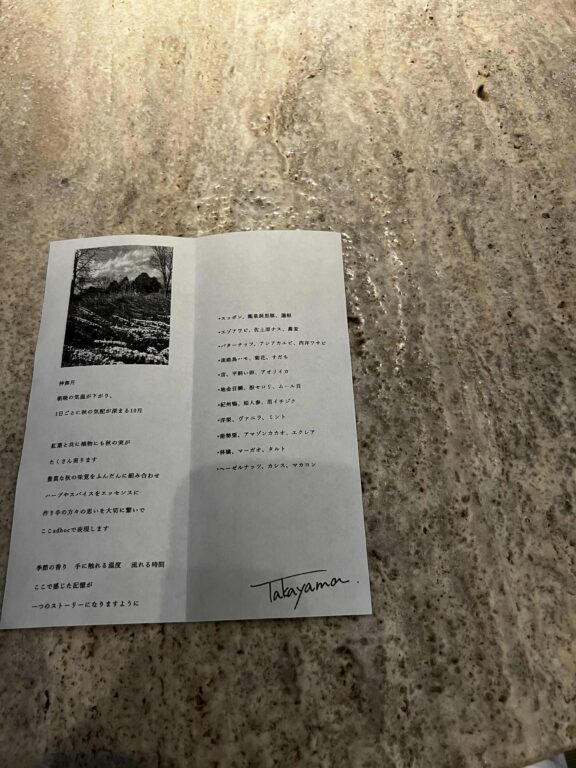 高山シェフ感性や熱意、クリエイティブなストーリーを感じられるランチコースが始まります。
