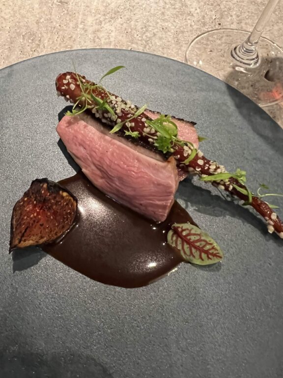 ソースには山形県の郷土味噌が入っていて、イチジク、赤ワインとの相性・コントラストが印象的でした。