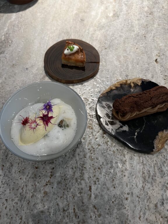 バニラアイスクリーム、りんごのタルト、エクレア