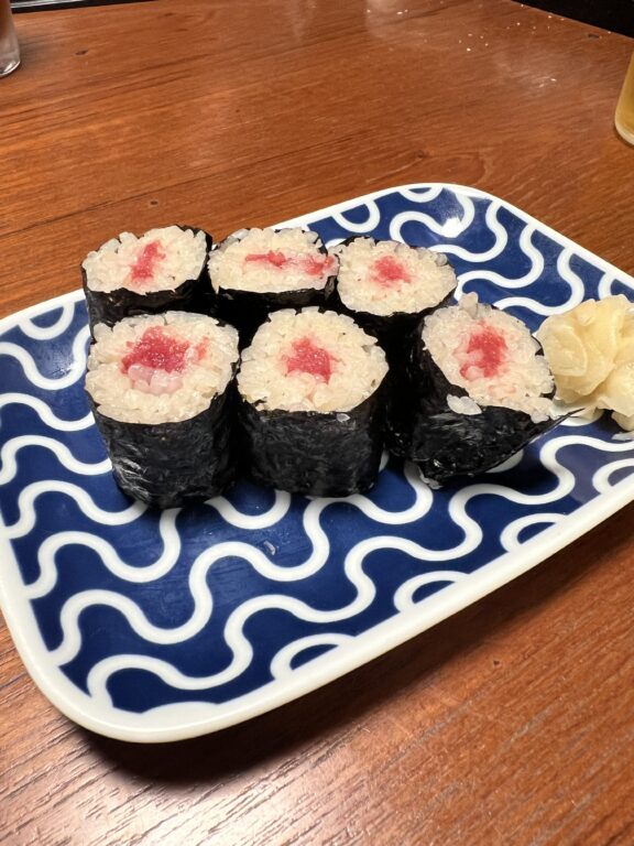 息子はお目当ての鉄火巻きやサーモンのお寿司を頂き私達は日本酒を頂きながら一品料理を頂くスタイルで愉しませてもらいました。