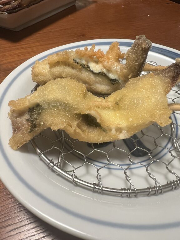 続いて串・焼き物は「鯵の大葉チーズ揚げ」