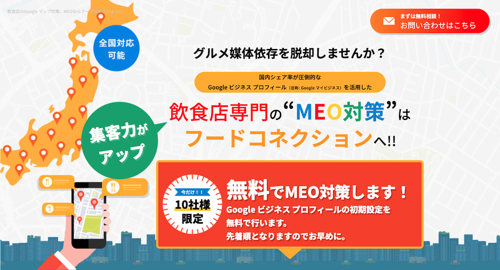 弊社では、Googleビジネスプロフィールの最適化を行う「MEO対策」を飲食店に特化して提供しています。