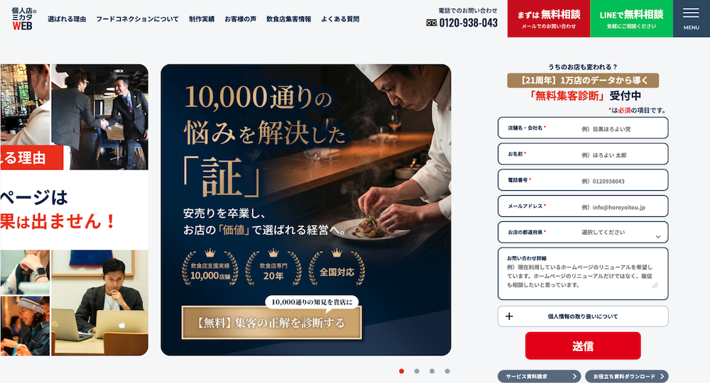 創業以来、累計10000サイト以上の飲食店ホームページを制作してきました。