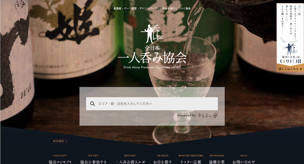 「一人で呑みに行きたいお客様」と「一人呑み歓迎の飲食店」をつなぐ自社メディアです。 加盟店は5000店舗を突破しました。